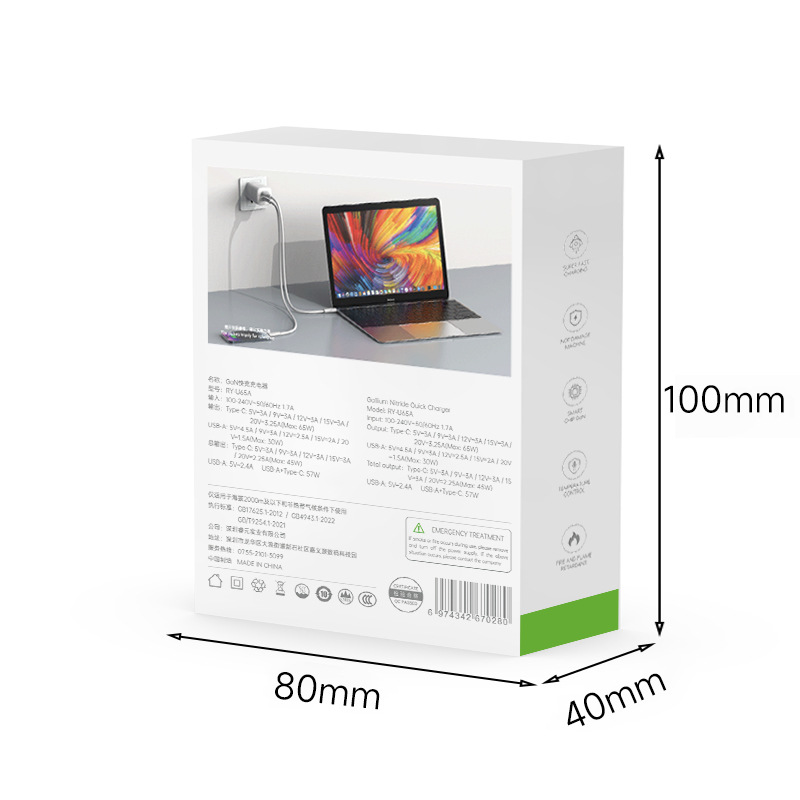PD65W デュアルポート PD+QC 携帯電話充電器 ノートパソコン ドローン 超急速充電 窒化ガリウム充電ヘッド