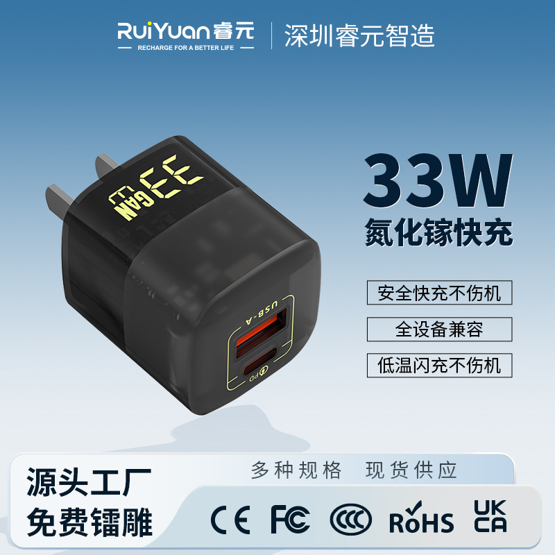 国家標準PD33W窒化ガリウム(GaN)急速充電器、AppleとHuaweiの携帯電話充電に適しています、透明なデザイン
