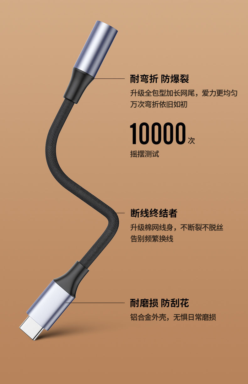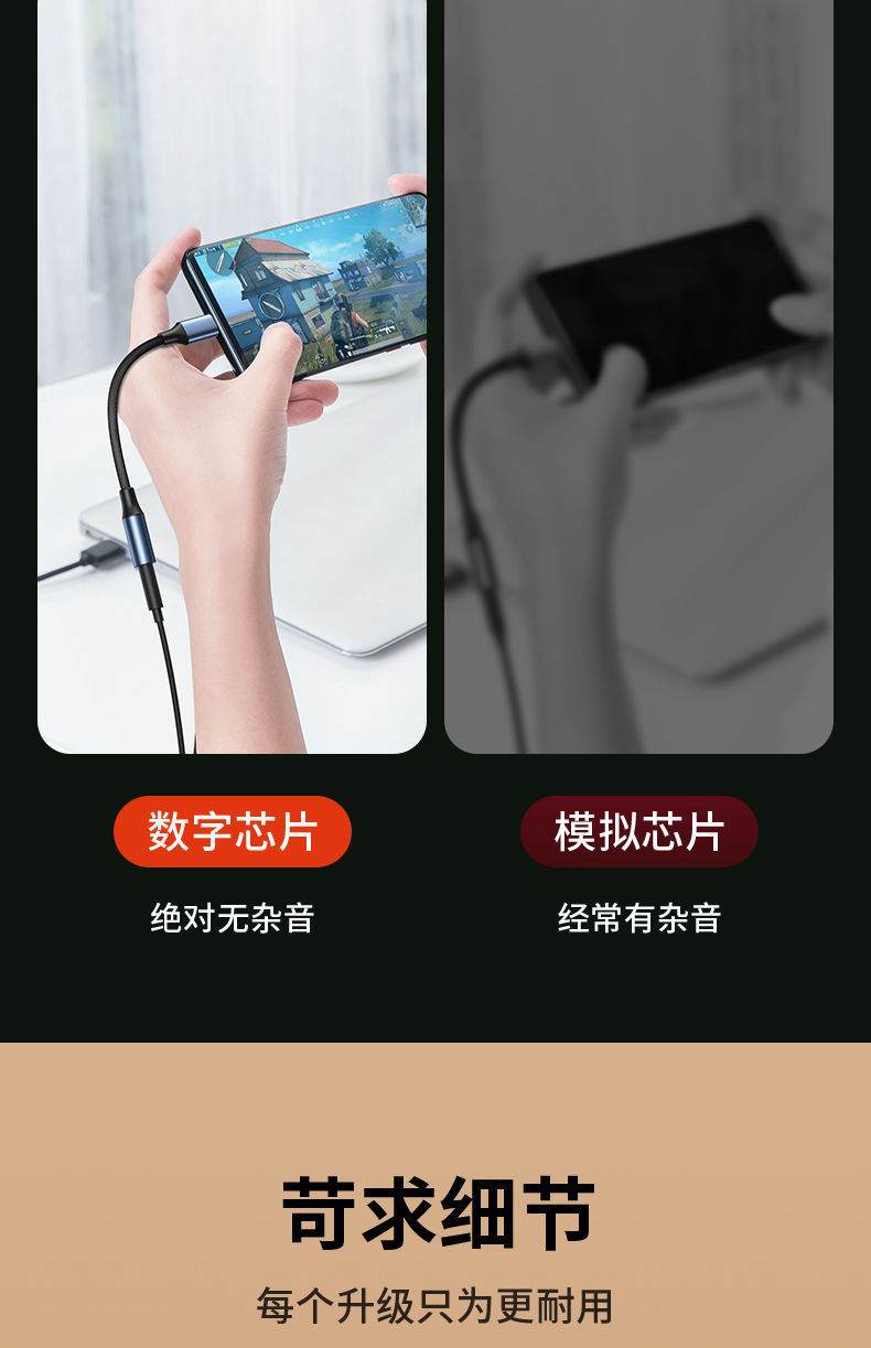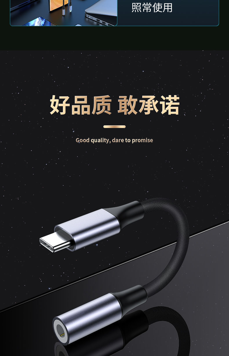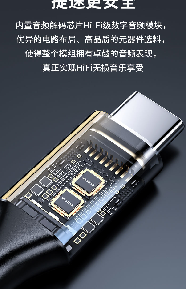 支持Type-C转3.5mm耳机,音乐播放、支持U盾语音通话和微信通话,采用16位96khz数字音频解码芯片,立体高保真还原音质,插拔达到10000次以上,适用于大部分Type-C接口手机及笔记本和平板电脑!