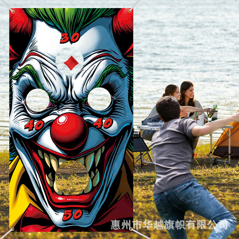 国境を越えたアマゾンは、新しい道化師ホラー鬼顔投げゲームのサンドバッグ旗親子インタラクティブ装飾の新しいモデルを提供しています