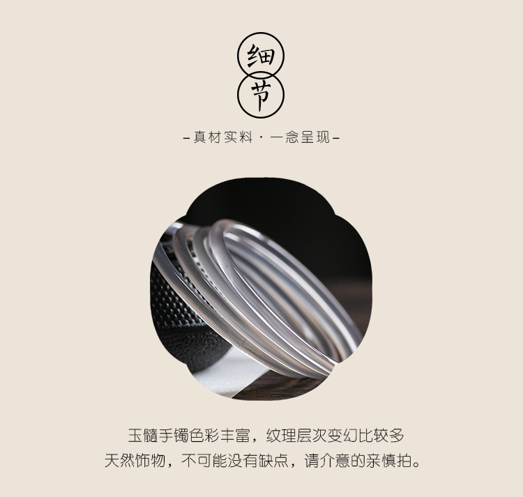 由于玉石属于天然石头,难免会有一些小瑕疵,古有“无暇不成玉”之说,仓库发货前会进行质检,严格把控商品品质。玉石有着天然的颜色和纹理, 切割加工后每个货物之间都会有一些颜色和纹理或者大小上的差别,每件各有特色,属于正常色差范围,介意者慎拍。