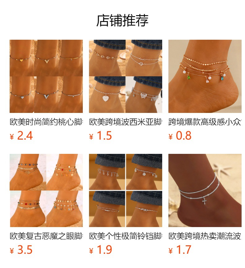 欧米の国境を越えた多層足鎖ins小衆セクシーなビーチに足鎖をかぶった女の子の足飾りセット