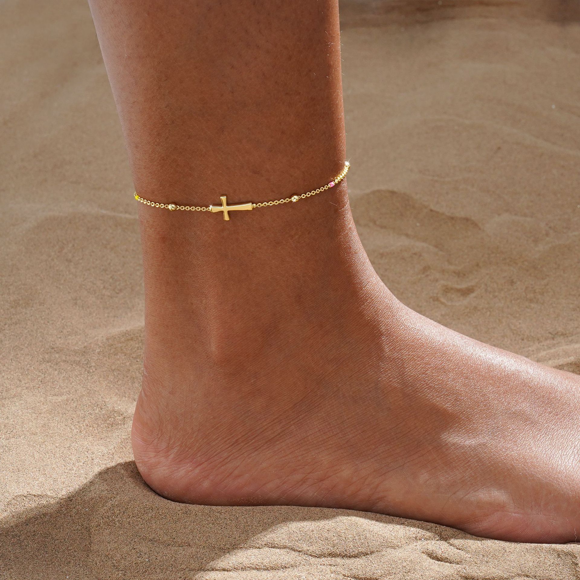 欧美新款十字架脚链金色时尚简约小众女士精致脚踝链珠宝礼品批发