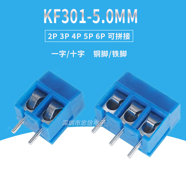 KF-301クロスブルーKF301-2P 3p 5.0mm pcb端子12a 300vスプライス可能