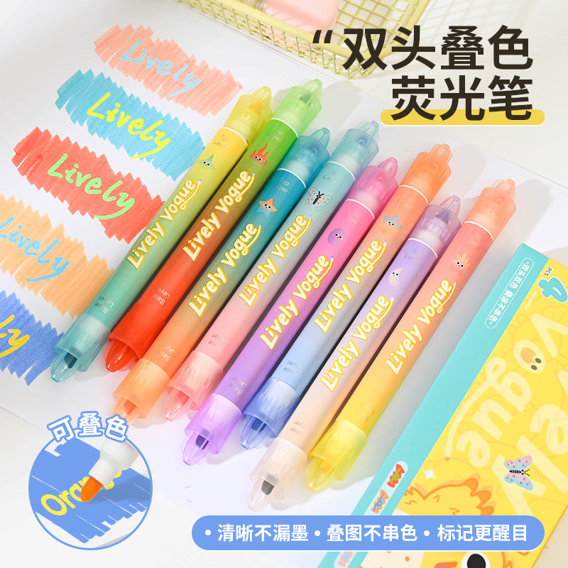 吻朵怪兽叠叠笔双头叠色荧光彩色手账重点记号学生标记荧光笔套装