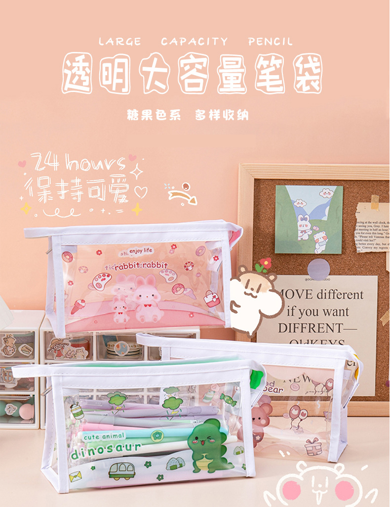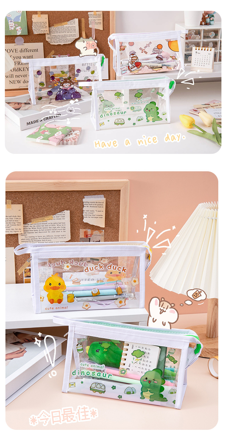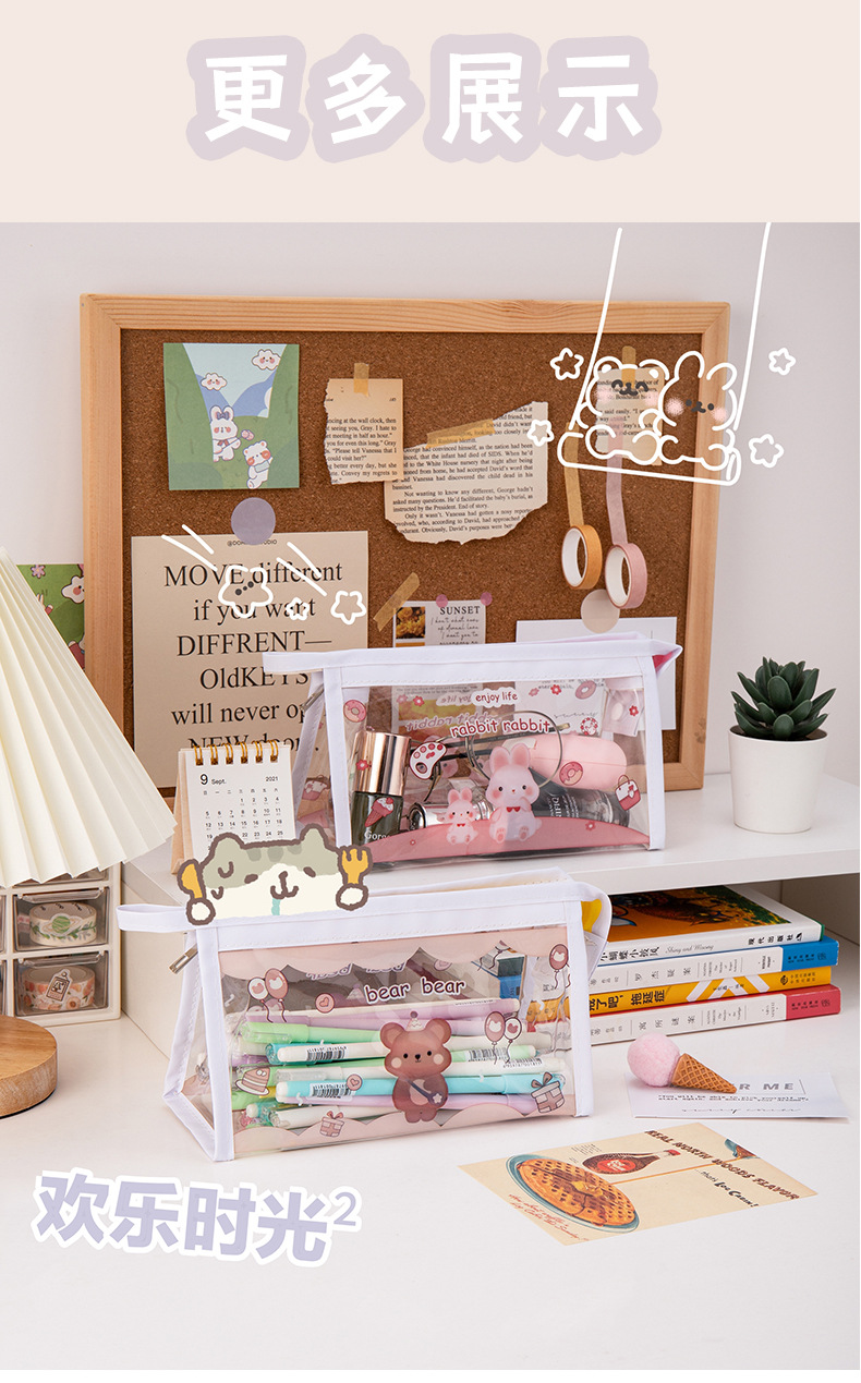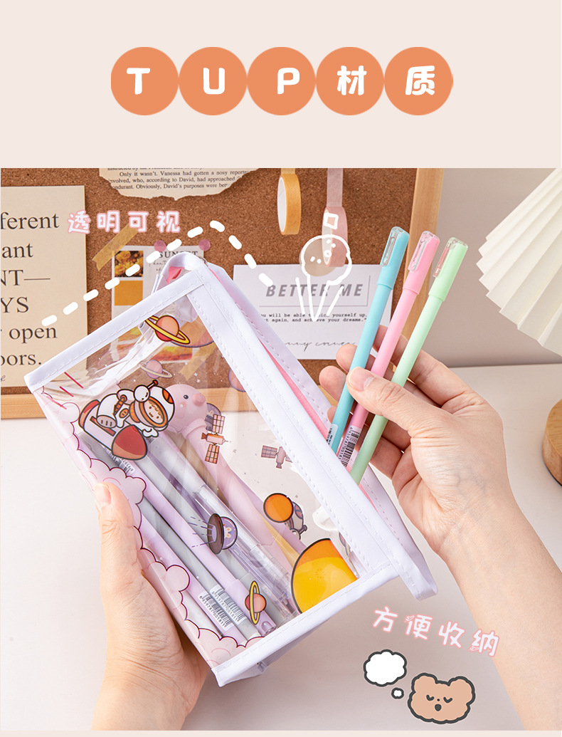 透明筆袋大容量高颜値ins風アニメかわいい学生必須文房具袋収納透明筆袋