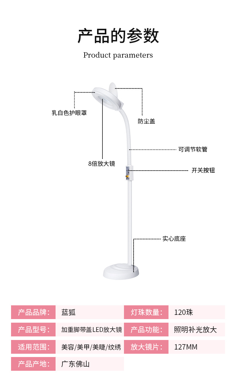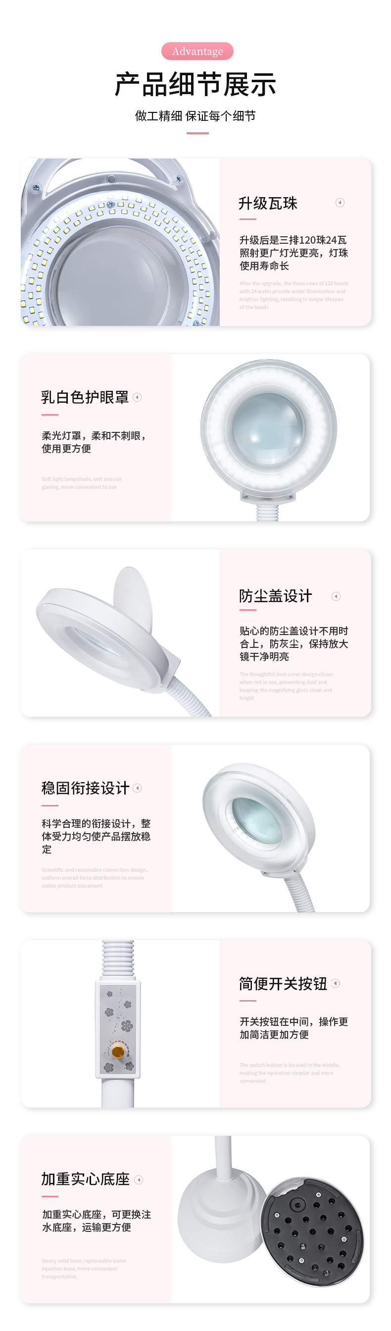 美容院led冷光ライトルーペ紋刺繍ランプ美容灯ネイル美まつげタトゥー専用無影フロアランプ