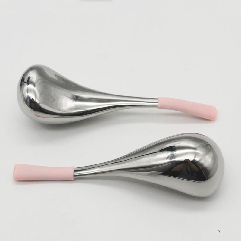 銀色の金属のアイクリームの棒の両用のマスクの棒の新型のクリームのスプーンは棒の目の部のマッサージのスプーンを選んで棒の現物を導入します。