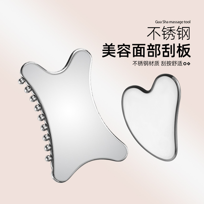 跨境加厚金属面部按刮板 便携拔筋美容按摩工具不锈按摩梳刮脸板