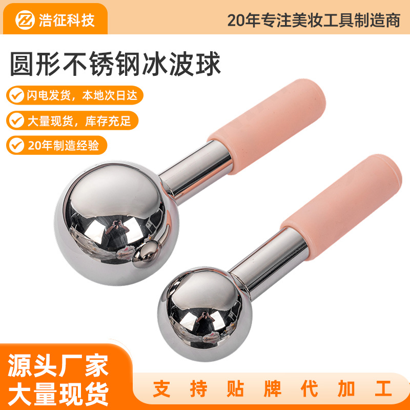 跨境热销金属冰波球面部提拉按摩冰波球冰敷热敷两用不锈钢冰波球