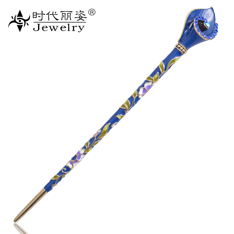 メーカー卸売り景泰藍髪かんざし女性彩色絵エナメルかんざし髪飾り復古風髪飾り宮廷盤髪飾り