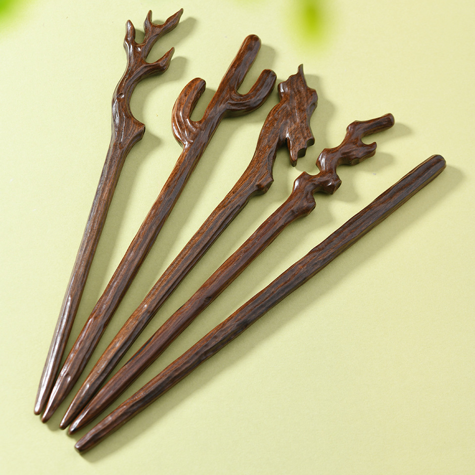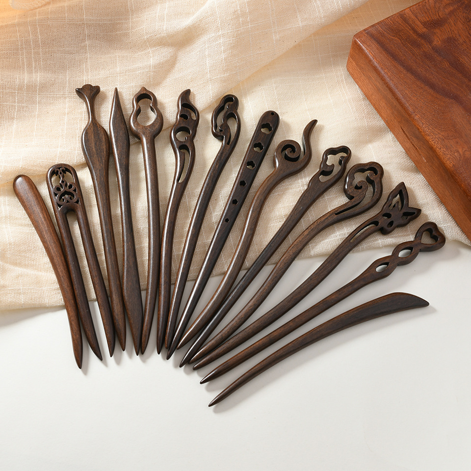 時代劇古風黒木檀ヘアピンシンプルな彫刻木製のヘアピン