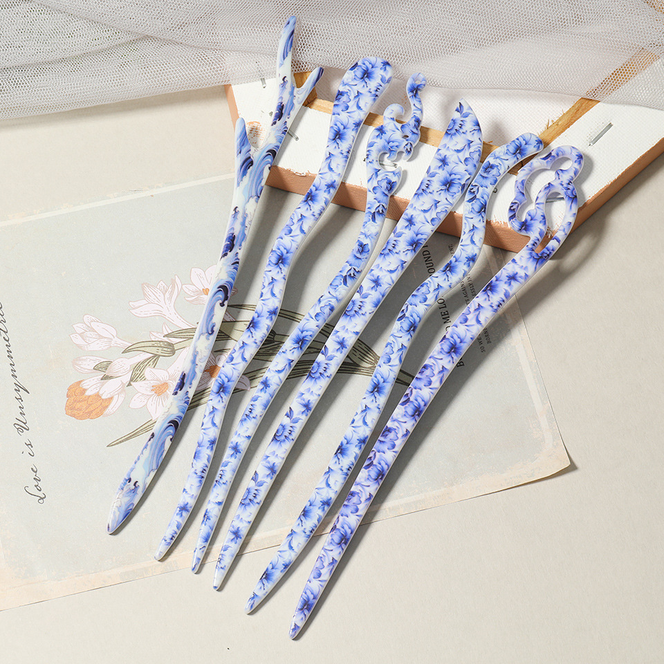 古典的な青花磁器ヘアピン国風酢酸ヘアピン高級感チャイナドレス漢服頭飾り盤髪ヘアピン