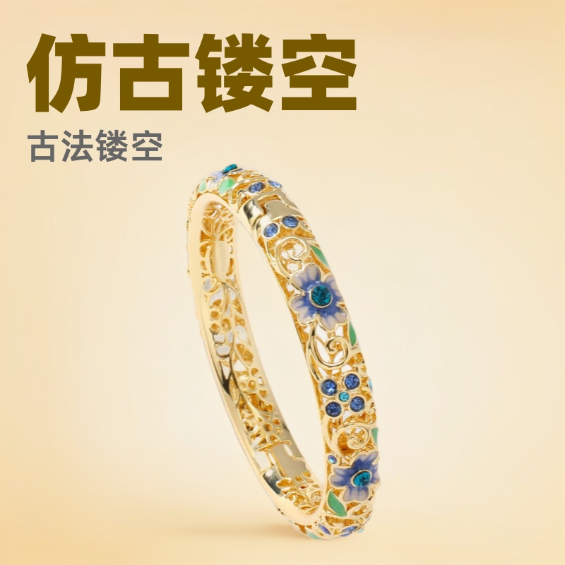 ネット赤爆金景泰青ブレスレットファッション個性民族風エナメル透かし彫り糸真金チャイナドレスアクセサリー