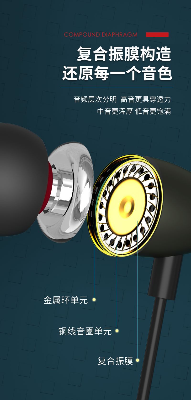 新型起爆金属イヤホンType-c有線イヤホン国境を越えた電気商が耳に入る線制御重低音イヤホン