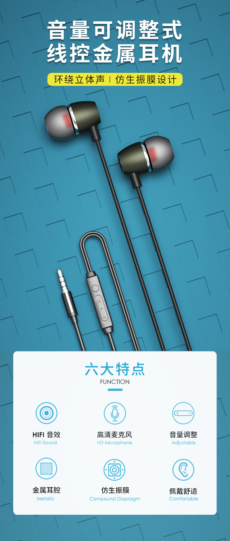 ワイヤコントロールのイヤホンはandroid 3.5円穴に適用されます。