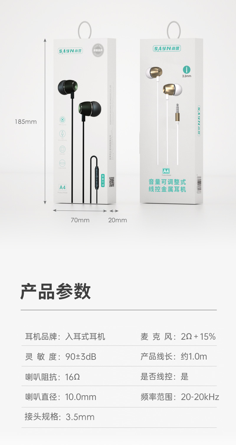 厂家批发尚营A4带麦金属线控 通话听歌重低音耳机手机入耳式 耳机