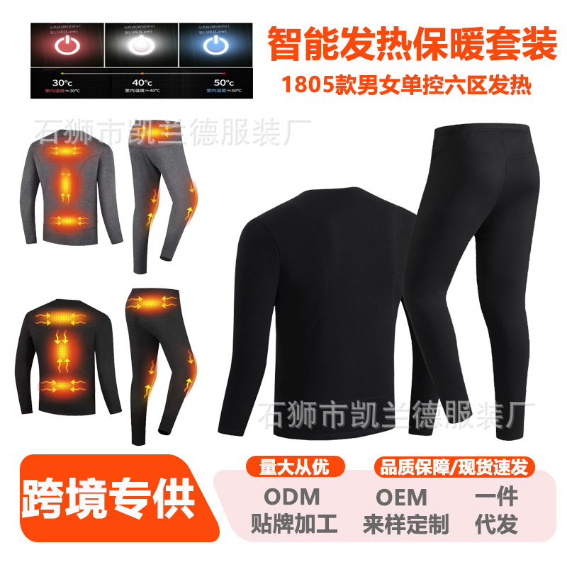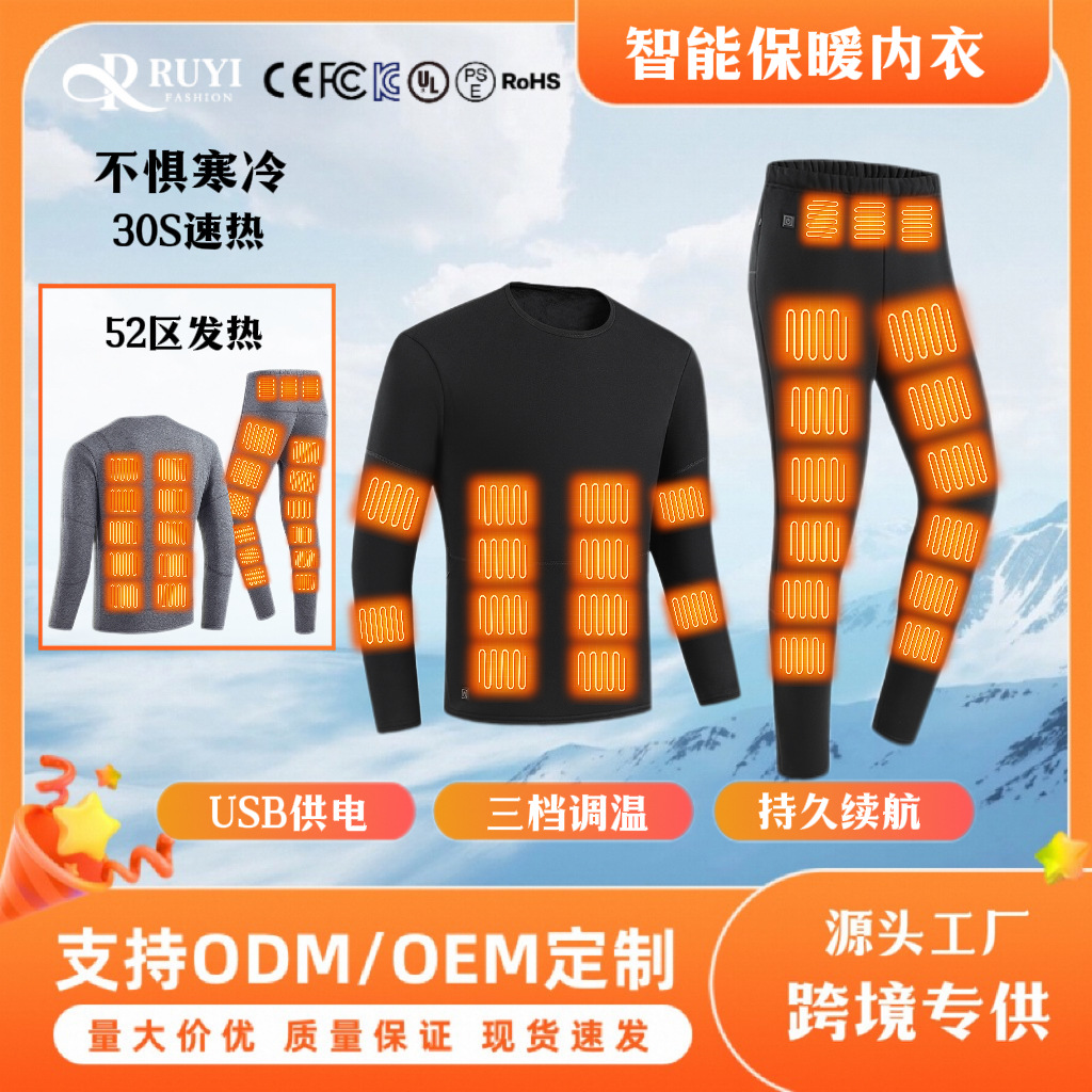 跨境爆款智能电热保暖内衣套装USB充电52区发热加绒打底衣男女款