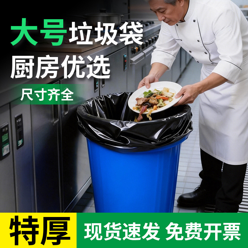大垃圾袋大号加厚特大黑色酒店物业超大特厚塑料袋平口式餐饮商用