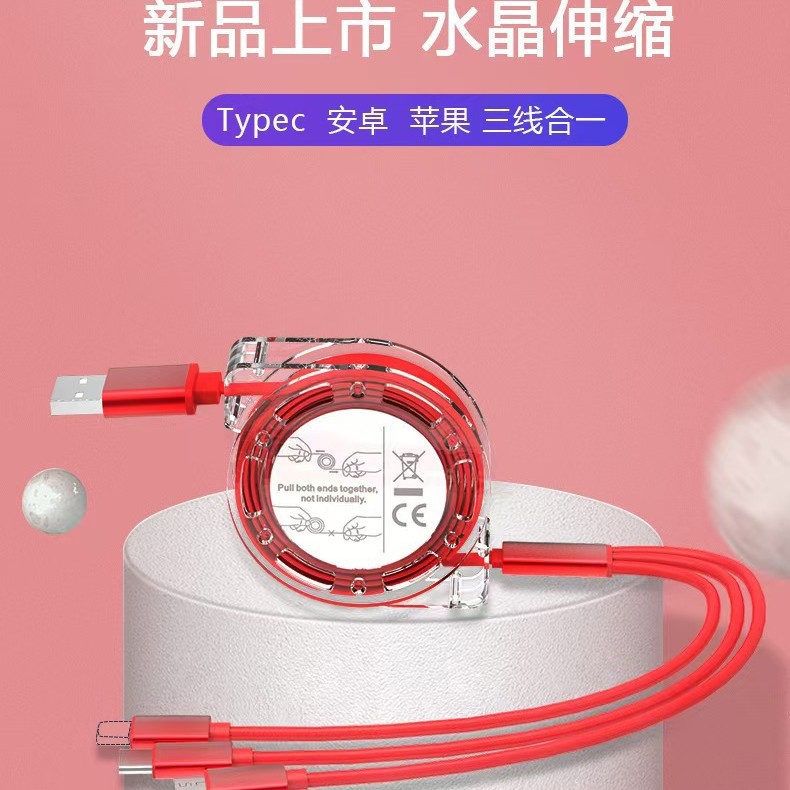 一拖三伸缩数据线三合一手机充电线制定快充企业展会礼品厂家促销