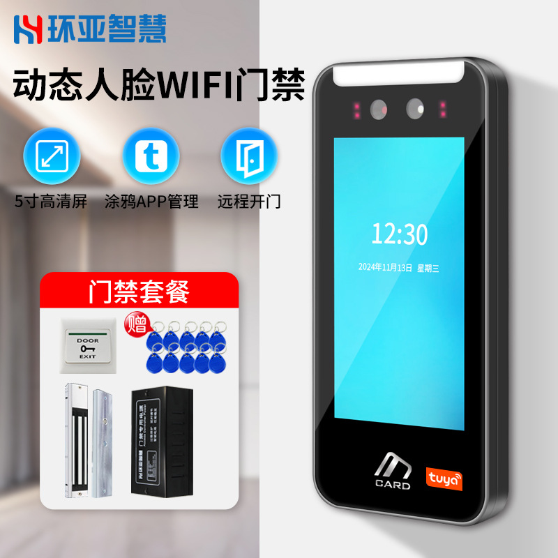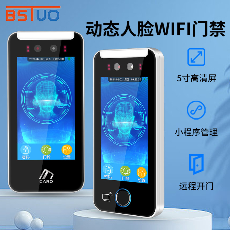 5寸动态人脸识别门禁一体机涂鸦指纹人脸刷卡门禁机考勤人脸门禁