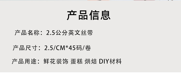 2.5CM马卡龙色英文字母丝带鲜花包装缎带糕烘焙花艺礼品装饰彩带