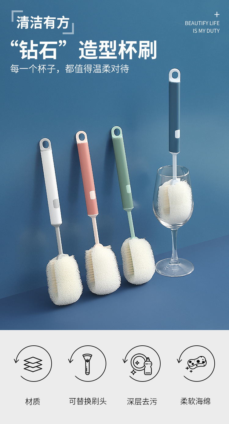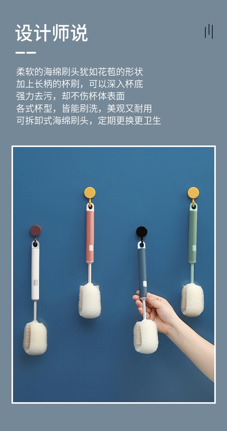 原创海绵刷杯刷可拆卸清洁刷家用奶瓶刷长柄保温杯去茶渍杯子刷
