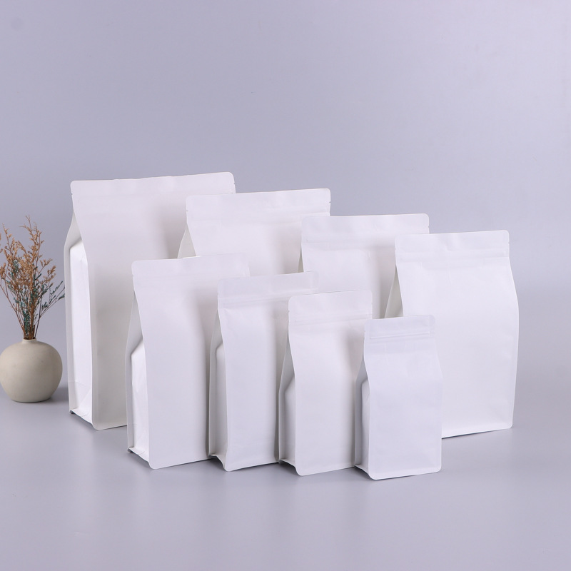 現物白色クラフト紙アルミメッキ八辺封自立自封袋カスタムクラフト紙袋厚手茶葉包装袋