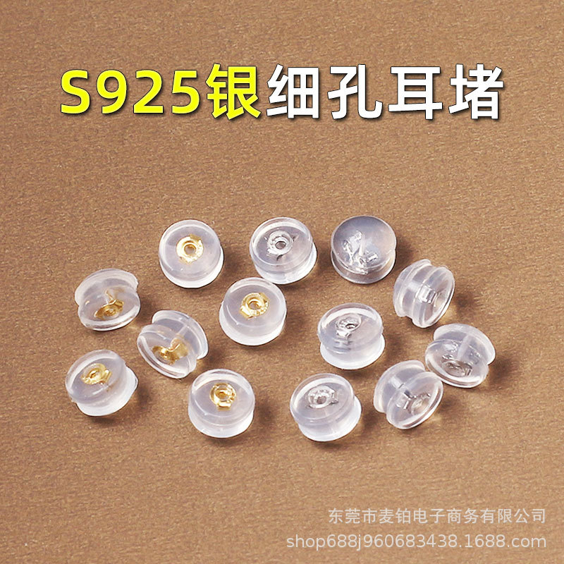 925纯银耳堵防掉超紧 透明硅胶耳钉后塞堵头堵塞耳环耳钉配件耳塞