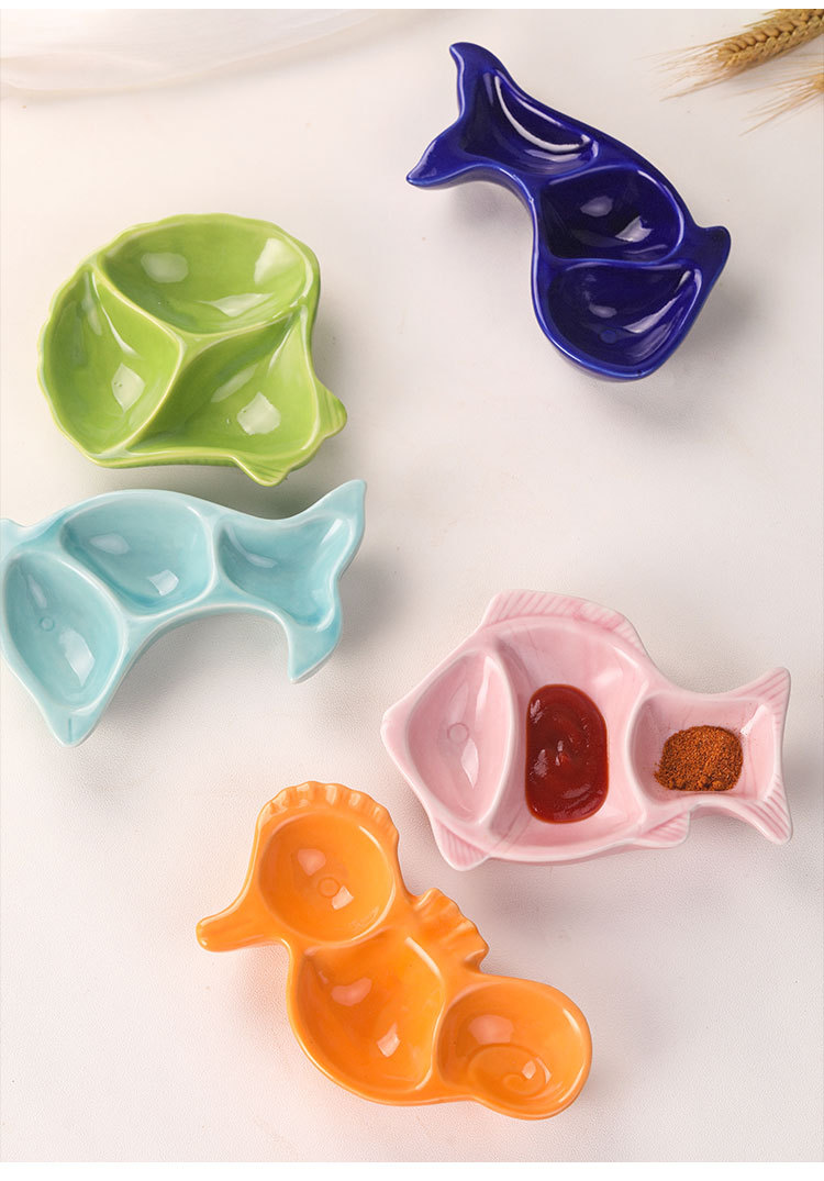 調味料小皿かわいいアニメ熱帯魚イルカクジラ貝殻海馬陶磁器ディップ小菜醤油酢皿