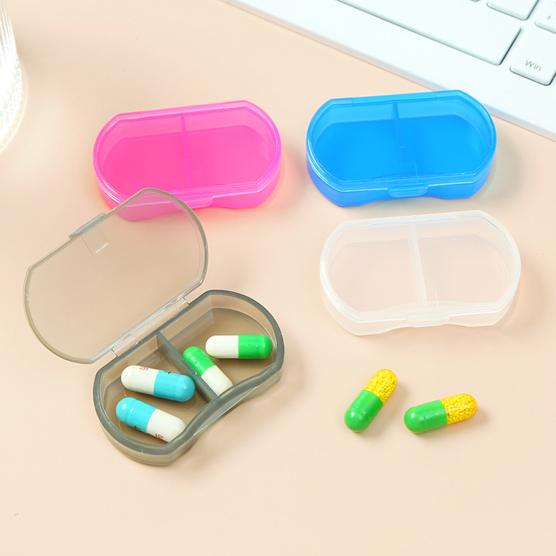 两格分装药盒收纳盒随身密封防尘盒分隔两格透明塑料盒便捷小药