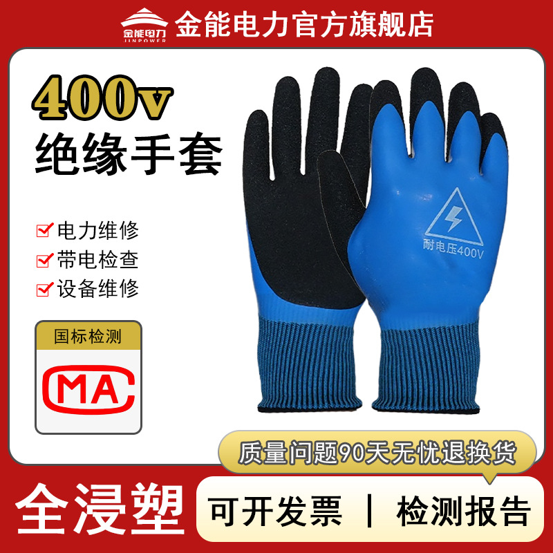 金能电力400v绝缘手套全浸塑低压绝缘手套带电作业电工防触电手套