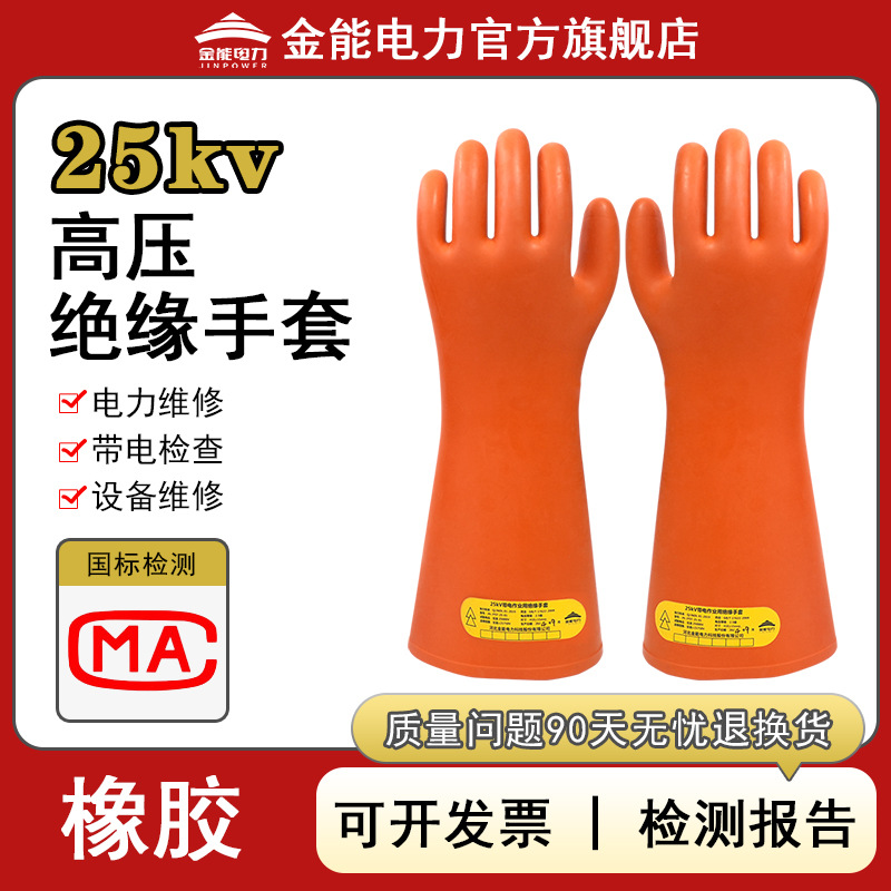 金能电力25kv绝缘手套 高压防带电作业电工专用橡胶手套 薄款掌形