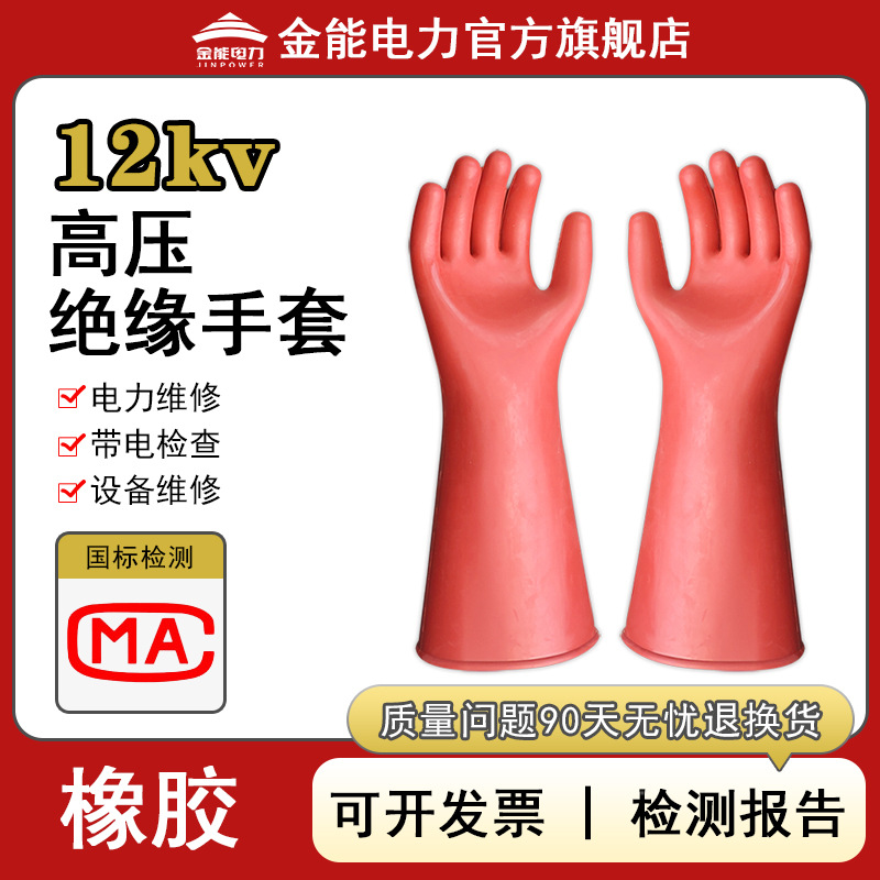金能电力12kv绝缘手套 高压防带电作业电工专用橡胶手套 薄款掌形