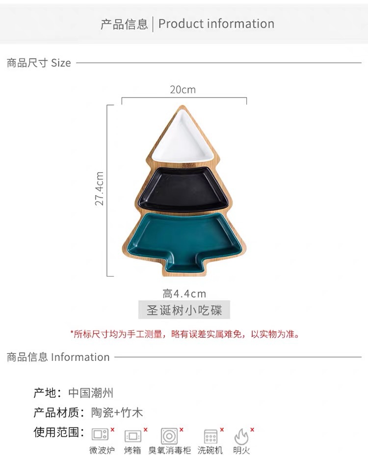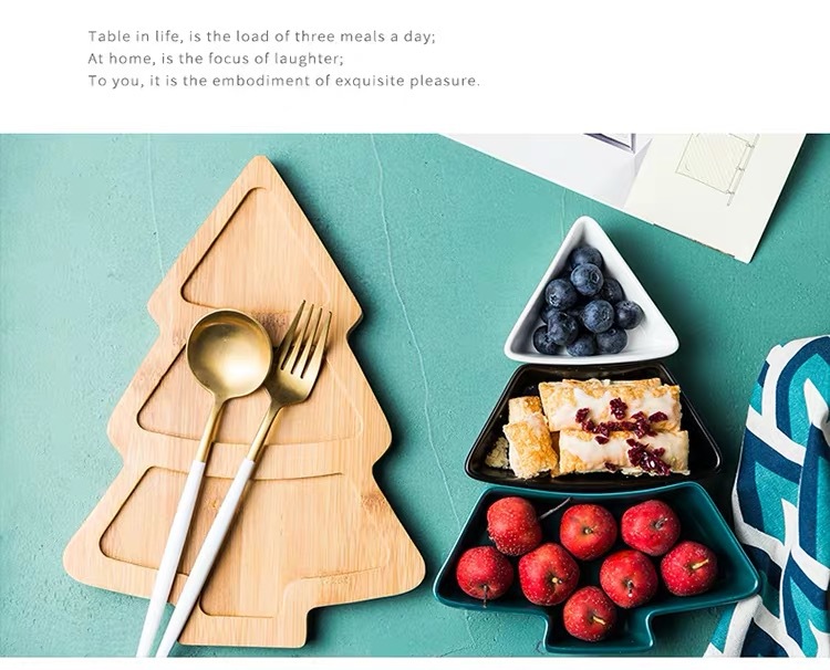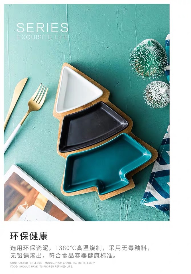 クリスマスツリースナック皿北欧クリエイティブ家庭用セラミック分格皿ナッツ皿ポテトチップス皿ネットレッドins皿