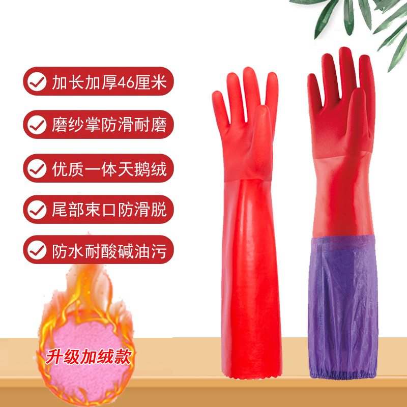 卸売りPVCベルベット保温手袋女性一体ベルベット防水ゴム冬洗濯皿洗い台所家事長持ち
