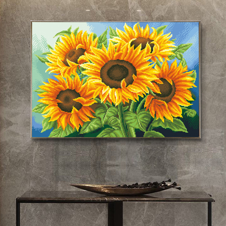モナリザ欣欣は栄十字刺繍の新しい客間の太陽花ヒマワリレストランの植物を手作業で自分で刺繍した