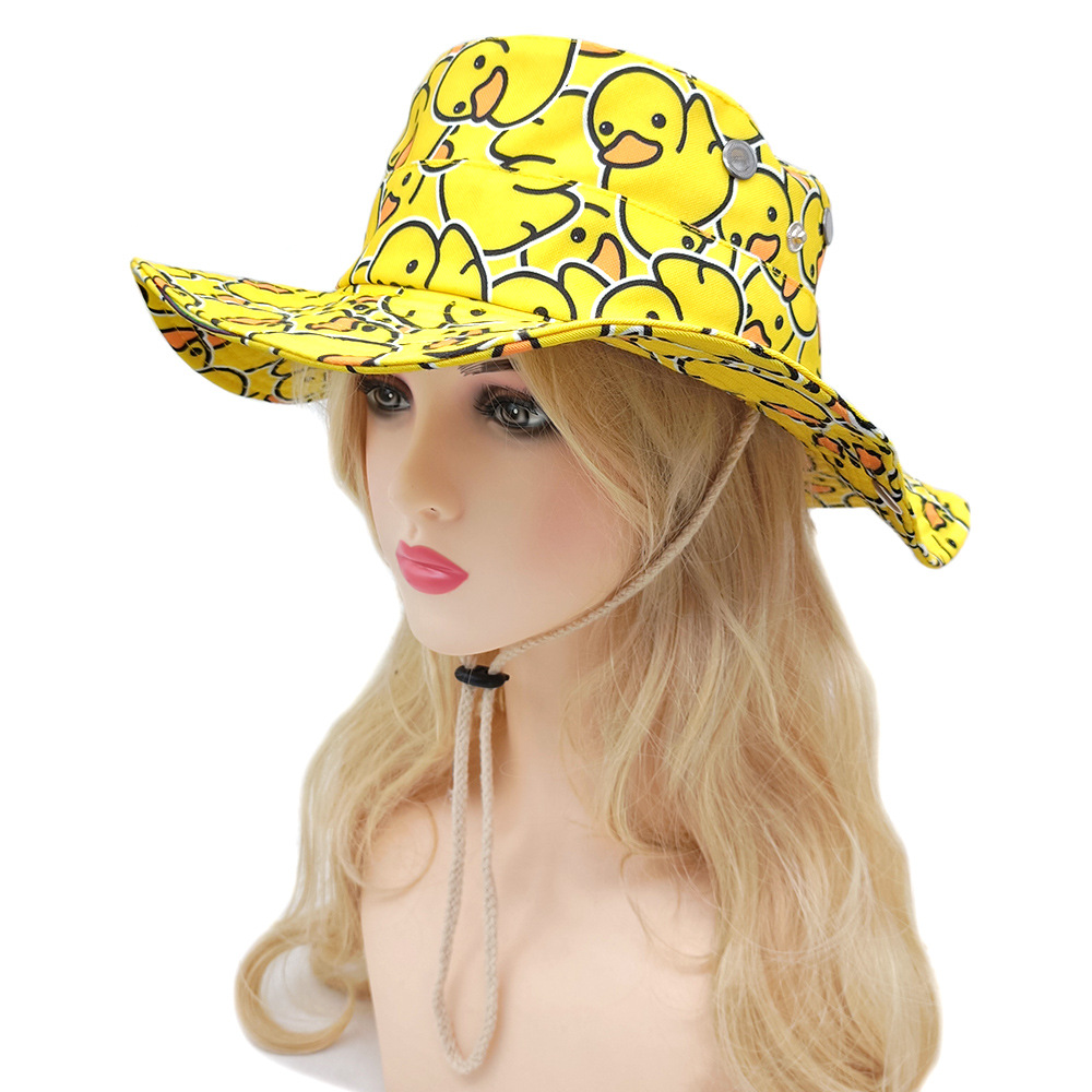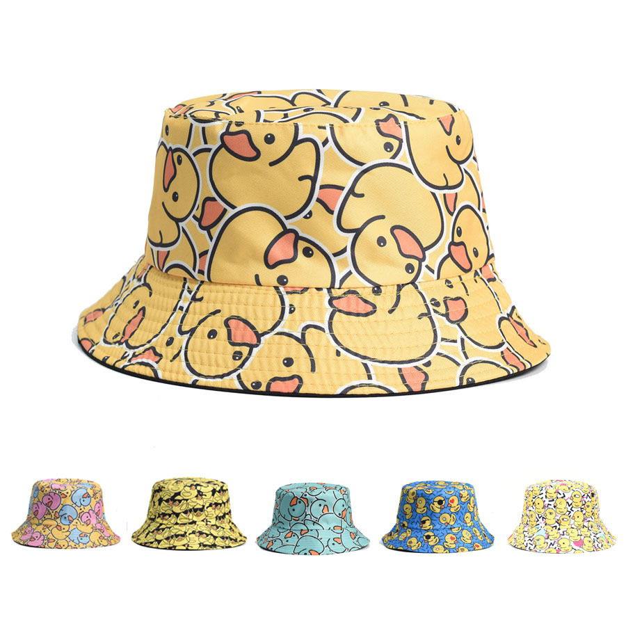 クロスボーダー Amazon 新しい漁師帽子夏かわいい小さな黄色いアヒル両面帽子デジタルプリントカジュアル帽子日焼け止め帽子