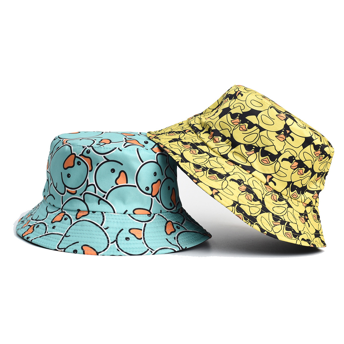 跨境速卖通热销款印花小鸭子渔夫帽欧美时尚双面戴遮阳盆帽现货批