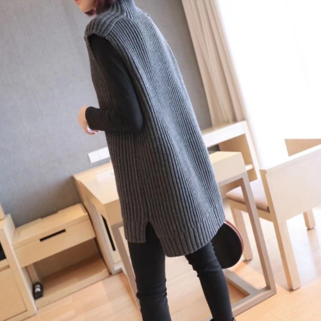 半高襟セーターの女性2023年の新型秋冬のゆったりした中に、中のロングタイプのシャツを着てベストを編みます。