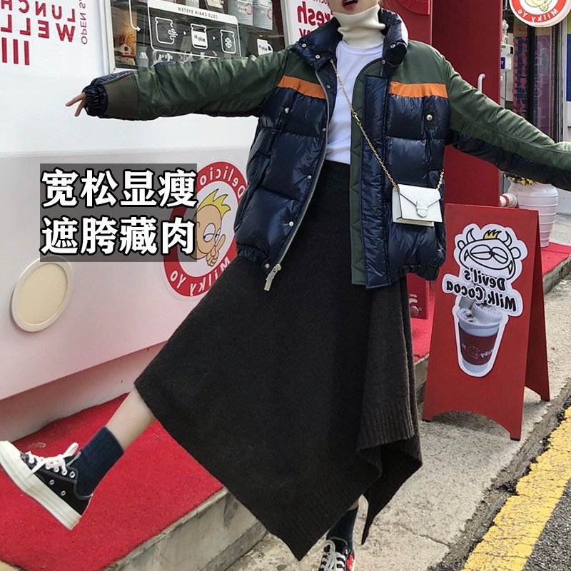ニットスカートの毛糸スカートの女性の中の長さの秋冬の大きいサイズの太ったmm200斤のゆったりしている不規則なa字のスカートの冬のスカート