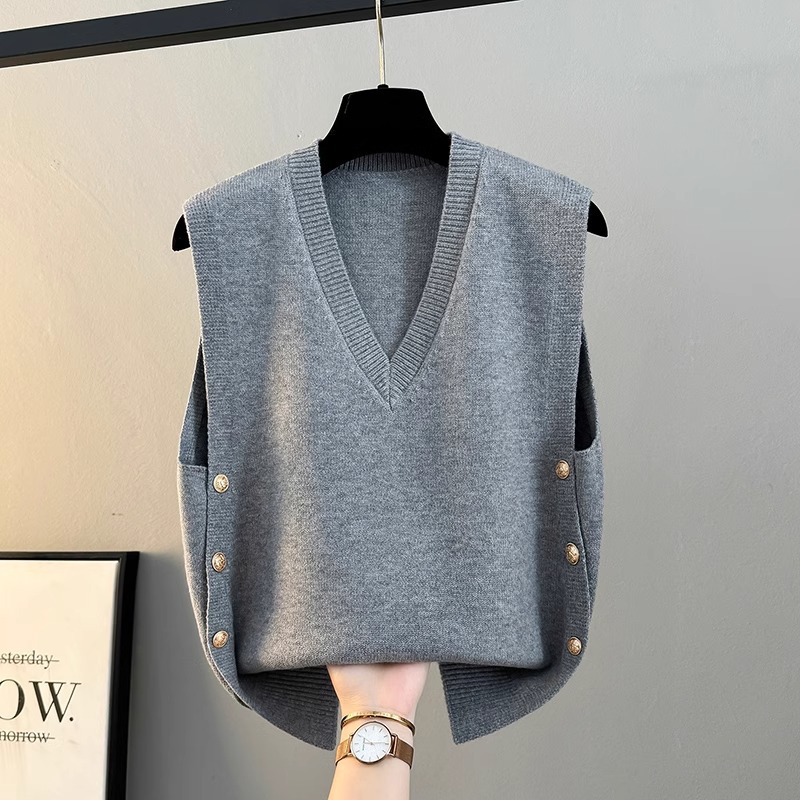 ベスト女性 2025 新作春と秋のルーズアウターニットベスト V ネックセータージャケットチョッキ冬のベスト