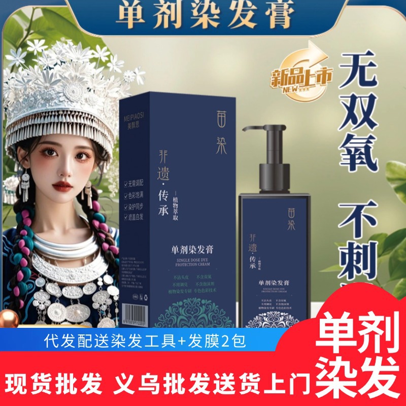 苗染単剤染毛クリーム、白髪をカバーするダメージなし単管単支、漂白不要、無アンモニア染毛剤、黒色植物染色