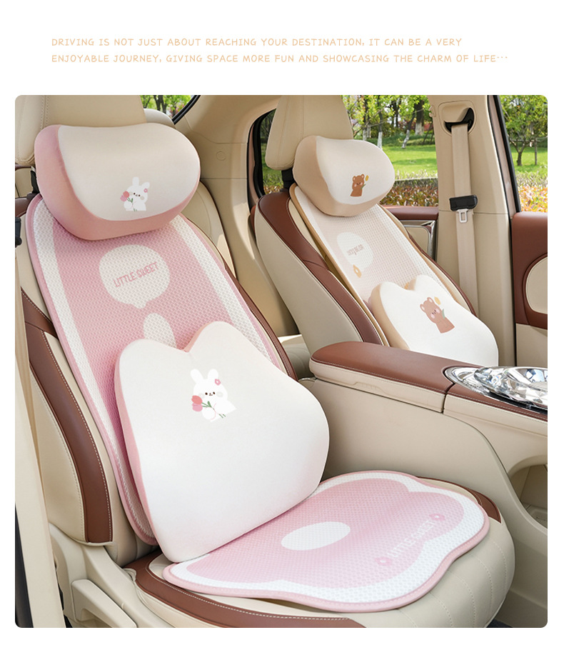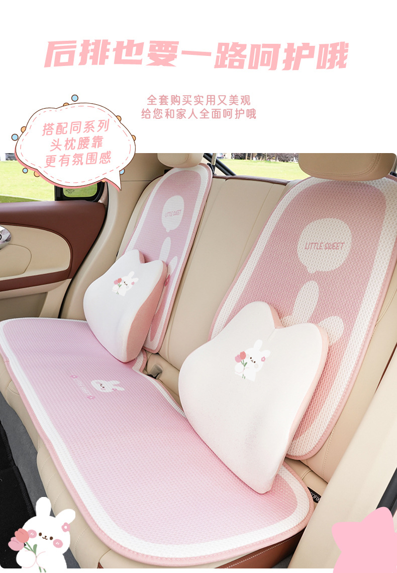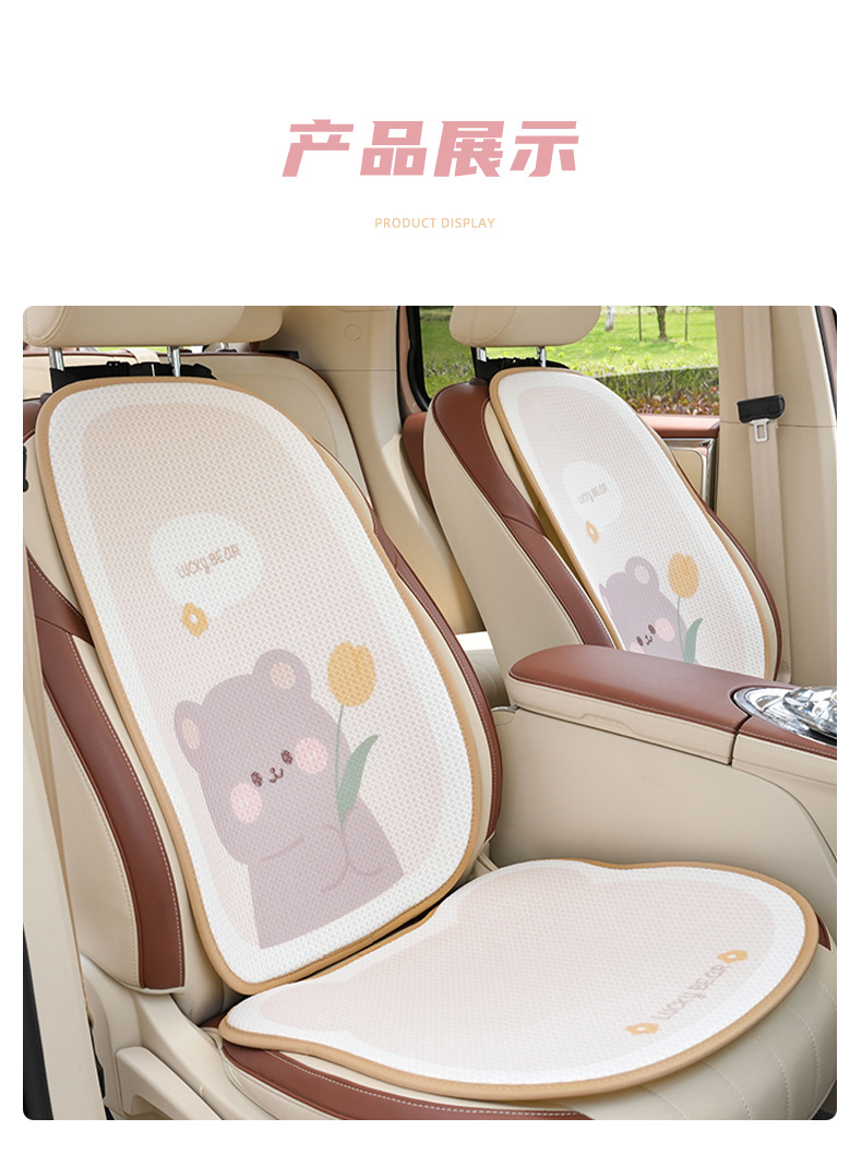 車用シートクッション、四季通用、夏用アイスシルク、快適で通気性のあるシートクッション、かわいい車内インテリアシートカバー