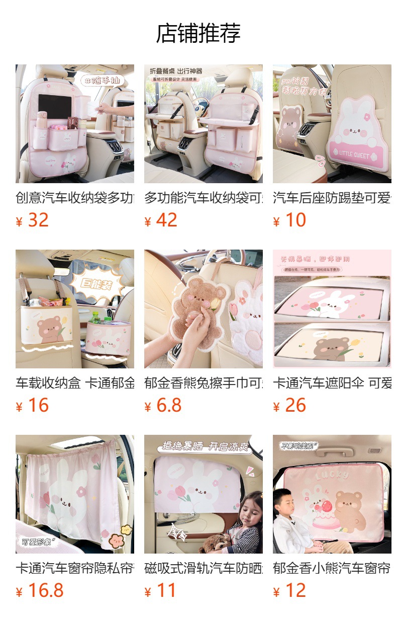 車の座席後ろの収納袋、かわいい漫画の車載ゴミ箱、創造的な多機能車内装飾、足こぎ防止パッド