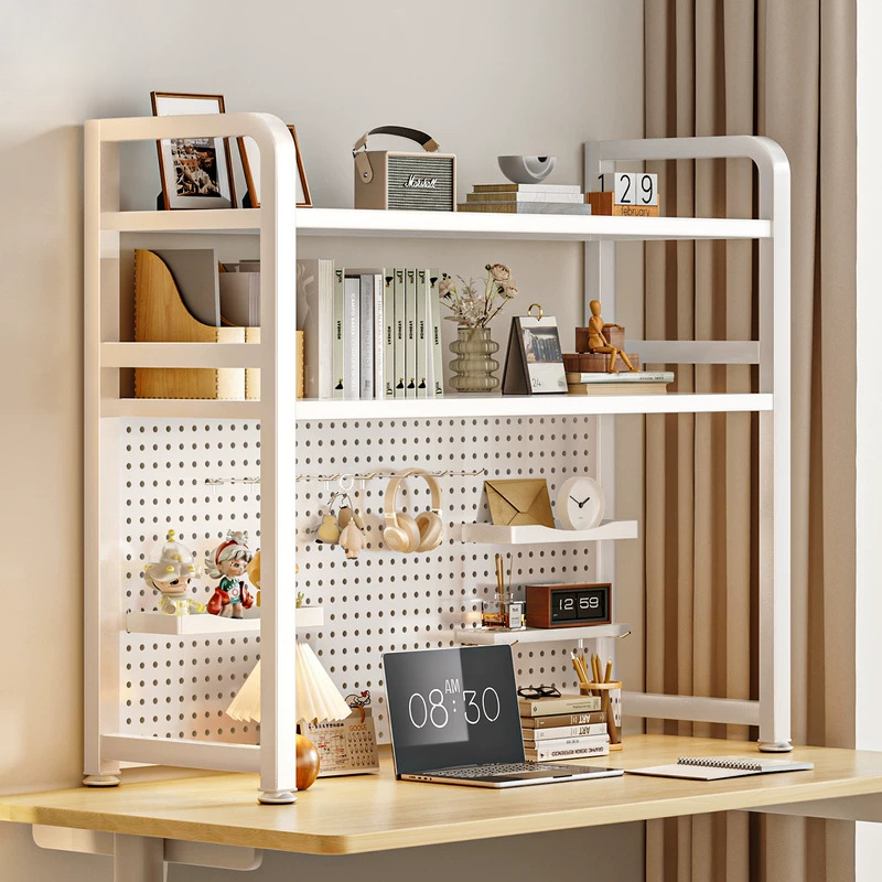 グリッド付き本棚デスク収納棚デスクトップ多層鉄芸棚学生コンピュータデスクトップ穴板