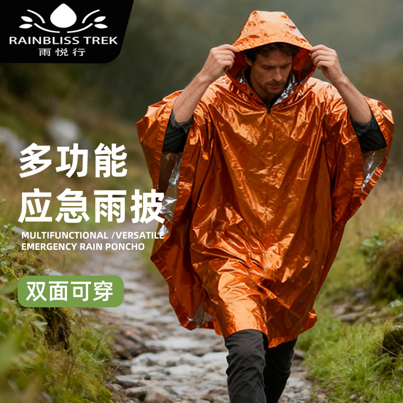 キャンプ用緊急防寒防水帽子付きマント型救命携帯レインコート卸売アウトドアレインコート