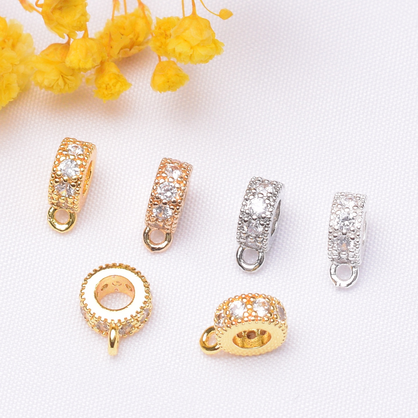 保色18k包金帯吊大孔隔珠仕切り片三方付属品銅マイクロ入りジルコンdiyブレスレットビーズアクセサリー