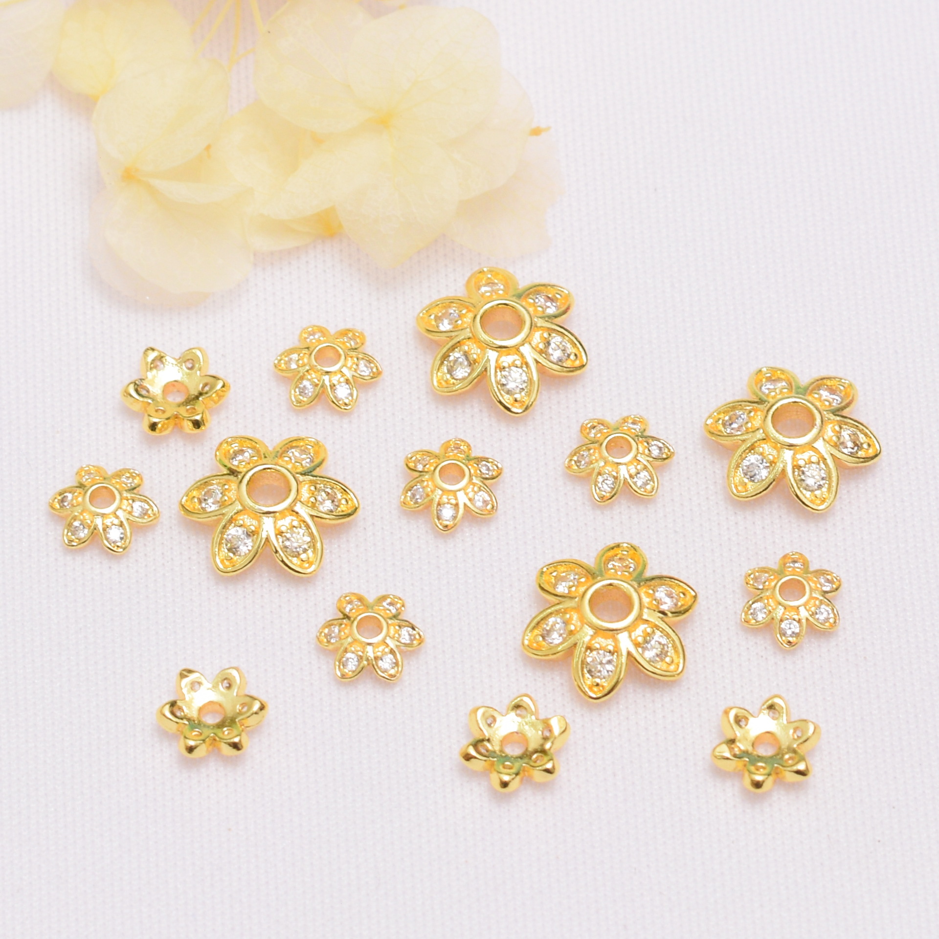 国境を越えて保色18k包金花托花びらにジルコンを入れた手串花帽diyブレスレットビーズ部品の仕切り