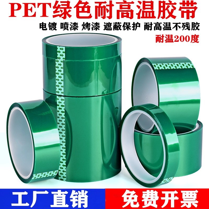 绿色高温胶带PET绝缘不残胶耐高温胶带汽车喷漆遮蔽电镀硅胶胶带